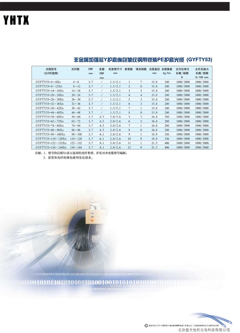 產(chǎn)品資訊 >> 光纜產(chǎn)品 >> 標(biāo)準(zhǔn)非金屬加強(qiáng)芯Y護(hù)套鋼帶鎧裝光纜(GYFTY53)