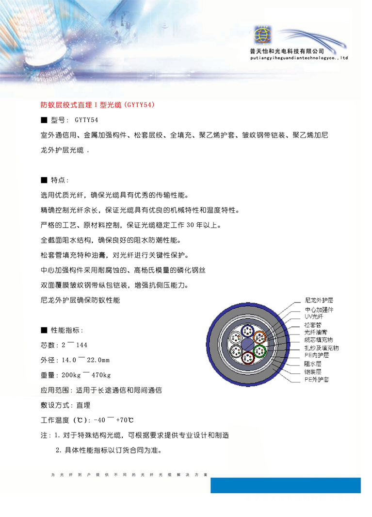 防蟻層絞式直埋I型光纜(GYTY54)